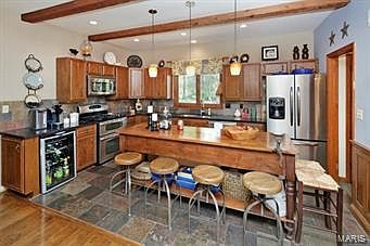 A rustic lane leads to this serene, private place with unparalleled vistas and a lovely, updated home set in a sun streaked glen. You will be captivated by this 4 bedroom, 3 ½ bath home that features: wood floors, a country kitchen with furniture grade wood center island, two fireplaces with antique mantels from a historic home in Webster Groves, cobblestones leading to front door from Laclede’s Landing, two possible master suites, a home office/4th bedroom, updated baths, recreation area in lower level, multiple decks, water features and a patio in the back yard. Set amidst almost 5 acres of wooded splendor, this is country at its best – a natural beauty that can’t be easily duplicated. Possible short sale.
