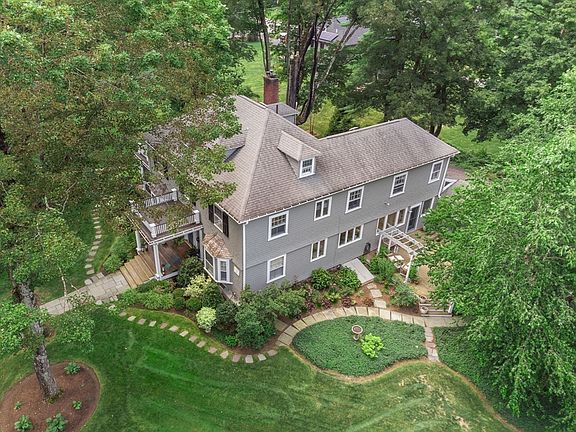 Once in a Blue Moon a Classic beauty such as this comes to the market, it's welcoming from the moment you arrive and wind up the drive as you're greeted with lush landscaping and stone walls. The property retains its classic elegance and grace yet offers a modern feel with high ceilings and beautiful views. The kitchen offers an open workspace and lots of windows full of natural light, it has updated appliances, and there is access to both a side deck for morning sun as well a stone patio off the back side of the home for shady summer solace. You will find a beautiful front to back living room that opens to the most spectacular screened porch that overlooks a lush yard and greenbelt. The second level offers multiple bedroom options, a library, and an office. the 3rd floor has two additional bedrooms, a workspace, and a full bath. Extensive gardens envelop the 2+ acre property and offer terraces, stone walls, and a firepit area. This a rare offering for the discerning buyer.