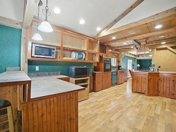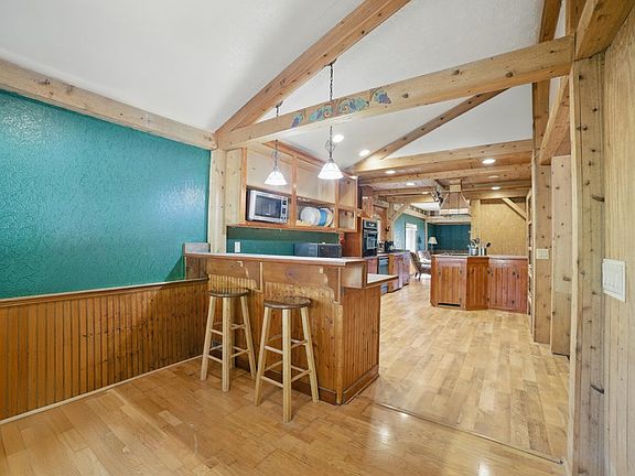 Welcome to this one-of-a-kind 3-bedroom, 1-bath home nestled on 2.55 acres in the Clear Fork City school district. Bursting with personality and warmth, this 1,696 sq ft home features unique rustic touches throughout—including exposed beams with accent lighting that adds both charm and character to nearly every room. Enjoy an open-concept kitchen with ample cabinetry, natural wood finishes, and bar seating perfect for casual meals or entertaining. The spacious layout includes a main-floor laundry room and a private owner's suite for added convenience. Relax in the cozy family room featuring a wood-burning fireplace, or entertain in the rec room with a built-in bar and game area. The enclosed covered back porch with a second fireplace offers the perfect spot to enjoy outdoor comfort. The heated 4.5 car attached garage offers plenty of storage for vehicles or hobbies. If you're seeking a unique, character-filled home with land in Bellville, this is the one you've been waiting for!