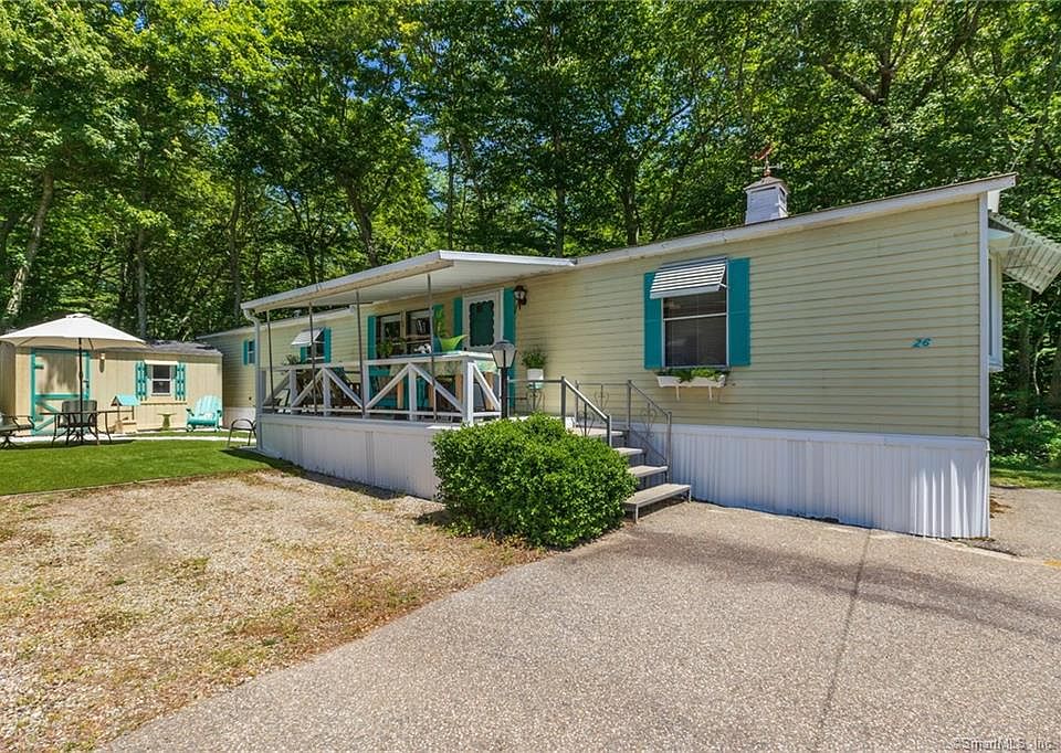 Don't let its age fool you...this meticulously cared for and unique mobile home is situated on what is undeniably one of the best lots in this quiet 55+ park. Prepare to be wowed by it's spaciousness, charm and stylish dcor. Lots of outdoor space to enjoy, including a covered porch as well as a shed equipped with lighting, power and a workshop area. You will absolutely love the location of this lot which is situated toward the back of the park up against the wood line. You also have your own personal babbling brook that you can listen to as you sit on your private back deck. Park owner has thoughtfully installed a generator to run heat and necessities should there be a loss of power to the park. This is not one to be missed! Subject to park approval. No dogs allowed. One cat allowed per park rules.