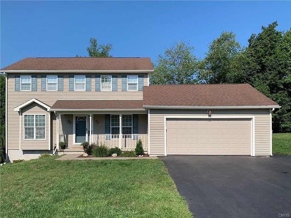 Well-maintained 3 bed/2.5 bath Colonial in Scriba's Foxwood Farms Development. Interior has been freshly painted throughout and home is move-in-ready! 2-car attached garage leads to mudroom with closet, laundry room, half bath and pantry. Newer appliances in the kitchen and plenty of counter space and cabinets. Dining area with patio doors leading to refinished deck big enough for room for patio furniture and a grill. Family room, living room and formal dining room make this a great floorplan for entertaining or working from home. Second floor has 3 bedrooms including a master suite with walk-in closet and private bathroom. The upstairs landing has a room with a half-wall and can be used as a computer room, library/book nook gaming area or playroom. Full walk-out basement with patio doors can be easily finished to add an in-law apartment or student-suite. Backyard is large enough for a pool in the summer or ice skating rink in the winter and has a new retaining wall. Convenient location just minutes from local shopping and a quick commute to SUNY Oswego. Taxes are shown without exemptions.