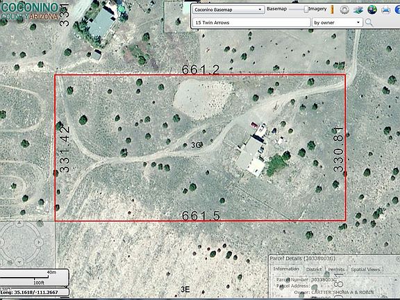 One of only three available parcels with hard to acquire well. The property is occupied and House is permanently attached to concrete pylons.Listing agent must be notified for a visit beyond the I-40 Exit. The home is usable but would not be the reason for buy.Owner will consider leasing. This offering is concerning one of three 5 acre lots just to the Southwest of the new Twin Arrow Casino. Across street from planned shopping center. Will be sold with adjacent 10 acres.It is also adjacent and across freeway from Hopi much talked about public services and community. The commercial potential is almost unlimited. Bar and Grill, Condos, truck stop, dealership, fast food, ??? To be sold with MLS''s 4931785, 4953345--See Docs or Road Easements