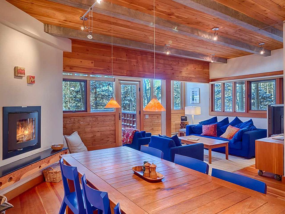 Come enjoy this modern ski condo in a destination like no other, Taos Ski Valley. Located in the heart of Taos Ski Valley, overlooking the world-class ski mountain and town center, this condo provides the perfect location for all the adventure TSV has to offer. The condo has an open layout with an easy flow from the large entryway / mudroom, past the beautifully remodeled kitchen, into the dining and living room and out to the private patio with mountain views and the sounds of a bubbling creek. The kitchen is sleek and remodeled with beautiful counter tops, Sub-Zero refrigerator, and sleek custom cabinetry. The dining area and living room provide mountain and forest views with hardwood floors and a built-in wood burning fireplace that is designed to keep you toasty warm after a long day on the slopes. The master bedroom features a built-in desk, additional sleeping loft and an ensuite bath with striking tile. This condo is unique to the development with its custom built-in bunk room, providing additional sleeping space and a competitive advantage as a rental property. This unit can sleep 7, has easy access from the assigned covered parking space, comes fully furnished and is turn-key for your business venture or vacation home.