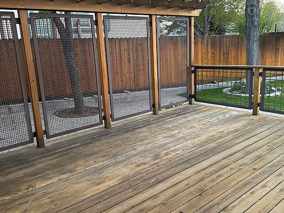 This custom home has been updated with Hickory engineered hardwood flooring, quartz counter tops, custom blinds, ceiling fans, skylights w/automated sun shades, 3 bedrooms, 2 bath, 2 car garage home, located in a a quiet, established neighborhood. It is close to most amenities including schools, medical, golf course and with all city utility services. The landscaping is unique and efficient which will make maintenance a breeze. The back yard is completely landscaped, with trees and concrete patio., Built in desk and shelving in one of the bedrooms that can be used as an office. Bonus points are the custom outside storage shed, attractive double wood fence, wooden patio deck and Pergola with powder coated ornamental steel siding, custom stained concrete walkway completely around the home, shade trees and rain gutters.