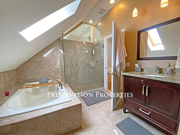 JULY 1ST Available Beautiful & Large Duplex Apartment in Totally Renovated Two Family Home. Granite Counter Stainless Appliances Cherry Cabinets Jacuzzi Master Bath with Granite Tile & Skylight. Huge open LR/Kitchen/DR area as Great Room. Deck off Master Suite. Vaulted Ceilings, Skylights, Loft-Like Feel, Extra Sun room for, yes, sun and fun. Laundry in unit. Shows well. NO PETS. Great References and Great Credit Required. Off street parking for 3 cars. Listing ID # 25307. Please Call AMY Owner pays for Water