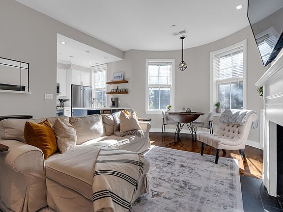 Beautifully renovated upper-level two-bedroom home on quiet and picturesque Upton Street. Enter to gracious bow front living/dining room with high ceilings, fireplace and quality custom built-ins including bonus desk area. Bright and contemporary kitchen features stainless steel appliances with gas cooking, quartz countertops and breakfast bar, subway tile backsplash and plenty of cabinet space. Two generous bedrooms each with ample closet space and access to private deck with Back Bay views from the primary. Central air conditioning, in-unit laundry and walnut stained hardwood floors throughout. This perfect two bedroom home in the coveted Union Park neighborhood is close to all of the South End's best parks, shops and restaurants!