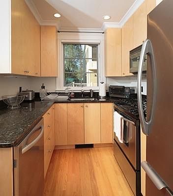 CONTEMPORARY DESIGN + URBAN LIFESTYLE - An impeccable & well-designed townhome in a prime Cambridgeport location & near lively Central Square. Distinctive features include open plan living room/dining room with gas fireplace & direct access to a private city garden & blue-stone patio. Complemented with a Mirage audio system & flat screen TV. Contemporary maple/granite/stainless kitchen. Half bath. The second floor offers two bedrooms - one with a private balcony. A full bath with Carerra marble & subway tile finishes. Third floor master suite: Light-filled bedroom with sitting area & balcony. Generous closets with custom Elfa systems. A four-piece master bath with limestone finishes, double vanity, whirlpool tub & separate shower tiled in limestone. The finished lower level has a separate family room equipped for flat screen TV & sound system. Laundry with stackable washer/dryer on this level. 2 zone heat/AC, wired for ADT Pulse Home System,CAT-5 wiring. Garage parking.