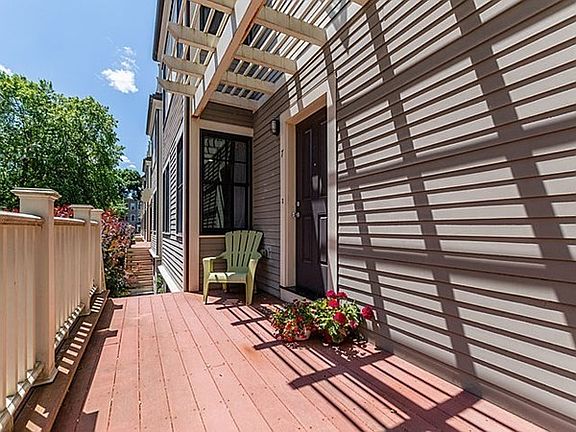 Tucked away, on a leafy private way, walkable to Central, Harvard & Kendall Squares & in the heart of desirable Cambridgeport, is this bright & spacious contemporary townhouse. Flooded w/light from hi ceilings, oversized windows & southern exposure you can enjoy the comforts of cent. a/c, a direct entry, heated garage, two private decks & your own garden/patio area. A 1st flr open plan includes a fireplaced living rm, kitch. w/island, powder rm & dining area that opens via French doors to a lrg private deck & patio. 2nd flr has 2 bedrms, full bath and laundry closet. The top flr is a mstr suite with 4-piece ba w/dbl vanity, walk-in closet & a large roof deck with views of Boston and “the Pru”. A garage, outfitted with EV charger, and a bonus room with option for use as a home office, den or playroom,are located on the street level. Easy commuting w/Memorial Dr. & turnpike all nearby. Multiple Red line options, Whole Foods,Trader Joe’s & myriad of restaurants all within blocks.