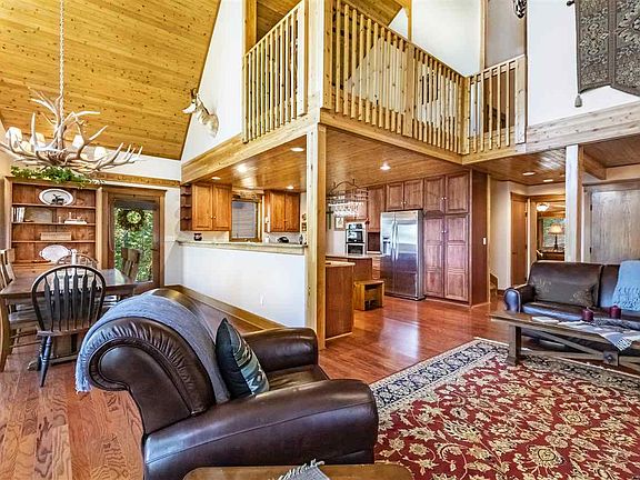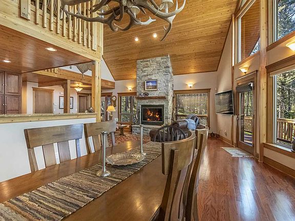 Situated just minutes to all the Resort amenities and town businesses this home is the perfect location. Three bedroom two and half bath with a above garage apartment that contains studio style living with kitchen and bathroom. Set on approx 1.06 acres consisting of two combined lots. Huge kitchen that is open to the living room and stone fireplace. Plenty of room for family dining and seating at the bar. Half bath off living room. Large window wall faces north east. Primary bedroom on the main floor with primary bath including double sink and jetted tub . Upstairs finds two guest bedrooms and one shared bath with loft living area. Deck spans the front and sides of the house with some covered portions. Apartment also has it's own deck.