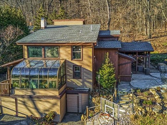 CUSTOM, hand built one of a kind home with an Adirondack feel nestled in a very private setting amongst nature with a professional free standing workshop and a covered Patio with a California outdoor fireplace. This home has character with it's open beams, natural light and built in furniture, yet has the open floor plan desired in a new home and voice controlled lighting. The sun room provides plenty of solar warmth and is a great place for plants, open staircase, huge exposed beams, two totally remodeled full bathrooms, loads of cabinet space in the Kitchen, walk in Pantry, two first floor home Offices, 2nd floor Loft, super sized Master bedroom walk in closet, 2nd floor Laundry Room and plenty of character. There is a free standing professional wood shop complete with equipment and a saw dust collection system, carport and more storage. You will love the outdoor covered Patio with it's fireplace and ceiling fan next to the waterfalls and fish pond and a relaxing Sauna. Private, great Mountain views, 5 year old septic, energy efficient home, 3 year old roof, workshop with wood stove and heated room all nestled in nature on a quiet tree lined Street minutes from Town.