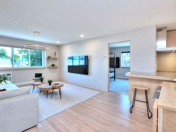 The apartment has been professionally decorated (Cloud sofa meant for lounging with you closest and hybrid mattress for the perfect slumber) - sophisticated and contemporary style, offering a chic and comfortable living environment. The kitchen is equipped with top-of-the-line stainless steel appliances, including a front knob stove, counter depth bottom freezer refrigerator, a dual drawer dishwasher, microwave drawer and washing machine. Enjoy 3" thick sleek quartz countertops and 3" thick island, custom cabinetry, an undermount dual platform kitchen workstation sink and elegant fixtures throughout. Customize to your heart's content via integrated smart home features such as Mysa heat thermostats, smart recessed lighting allows for 65 scenes and 16 million color settings via the Govee app, and motorized blinds ready to be programmed to your favorite levels during the day and evening. The bathroom features a spa-like design with a rain shower, premium extra large tiles, modern vanity, LED lit mirror with heat/anti-fog option and an automated faucet. Hardwood floors throughput, large windows with abundant natural light, ample storage space, secret/hidden front closet, 1 parking spot included in rent with plenty of visitor parking available. Pet-friendly complex. Owner does not live on site. Owner pays for WiFi, parking, storage, water, garbage pickup, sewage. Renter pays for utilities No monthly pet fee. One time $500 refundable pet fee if no issues at time of vacating 1 month security due at lease signing No smoking (vape, cigs, and any other smoking methods) in apartment