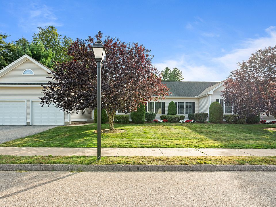 Come enjoy 'THE GOOD LIFE' at Village at Colchester's 15 Village Court. This exceptionally well-planned ranch-style 55+ adult community boasts attached oversize 2-car garages and offers up 1-level living at its best! No more yard work, just time for fun and relaxation. Enjoy a truly open floor plan (kitchen-dining-living room) with 9+ foot ceilings throughout and soaring cathedral ceilings in main living spaces. The abundance of windows, oak floors, and 4-season sunroom give this unit a warm, inviting feel and provide plenty of natural light to lift spirits. The kitchen features beautiful wood Viking Kitchen cabinets, a food prep island with seating and plenty of room for entertaining. The living room's marble-surround, gas-log fireplace adds an extra touch of elegance. Opposite the main living areas, you will find: a bonus room with Palladian window and soaring ceiling; the primary bedroom with ensuite and walk-in closet; another full bath with shower; and a guest bedroom. There is also main level laundry, plenty of closets throughout, huge unfinished basement for storage, and easy access from the garage right into your home for super convenience. Additional special features include a Trex deck (off the sunroom), pocket doors, ceiling fans with lights, propane warm air heat, central A/C and a great location close to all local services! Plus, it's an easy commute to Hartford and Norwich areas! This just might be 'the one'. Come see.