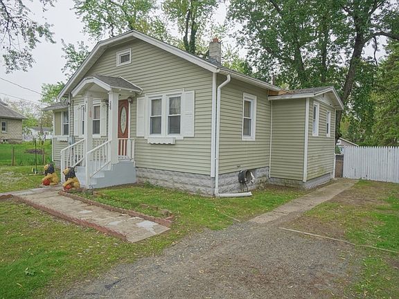 ¡Hola! Why rent when you can own. New roof on this vinyl sided home. Enter into living room that exits to sun room which brings you to side yard. Formal dining room. Nice wood floors thru-out . Cherry cabinets and pantry in eat-in kitchen that exits to back yard. Linen closet in hallway that brings you to two bedrooms and tiled full bath. Updated vinyl windows. Walk up attic for storage. Full basement with a room for extra space and a storage room. Forced air, gas heat and hot water. Circuit breakers. Good size yard all fenced in. Close to major highways and shopping .