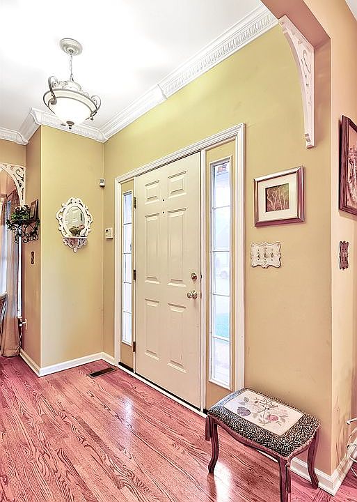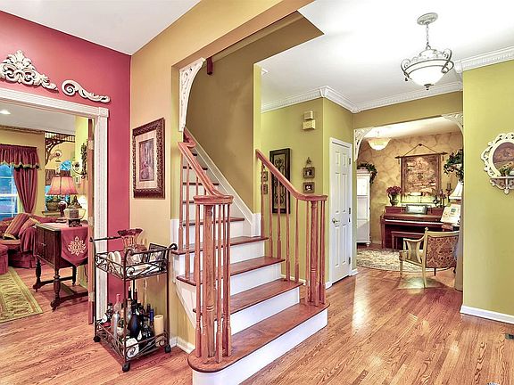 IMPRESSIVE CENTER HALL COLONIAL BECKONS FROM THE CURB WITH BEAUTIFUL TRIM, COVERED FRONT PORCH, BAY WINDOW WITH DECORATIVE EXTERIOR TRIM AND MANICURED LAWN COMPLEMENTED WITH NEATLY TRIMMED SHRUBS AND TREES PLUS LONG DRIVEWAY LEADING TO A TWO CAR GARAGE. THE FOYER PRESENTS AN IMPRESSIVE ARRAY OF WARM AND INVITING COLORS AGAINST DECORATIVE MOLDING AND GLEAMING, BOLD HARDWOOD FLOORS WITH A SPACIOUS FEEL LEADING TO THE FORMAL DINING ROOM WITH BAY WINDOW, WINDOW TREATMENTS, RECESSED LIGHTS AND SPACE FOR LARGER DINING FURNITURE AND CABINETS. THE LIVING ROOM IS PERFECT FOR RECEIVING GUESTS AND IS CURRENTLY USED AS SPACE FOR ARTISTIC CREATION LEADING TO THE FULLY UPDATED KITCHEN LOADED WITH BRAND, STAINLESS APPLIANCES, GRANITE COUNTERS, SUSPENDED LIGHT FIXTURES, UNDER-MOUNT SINK