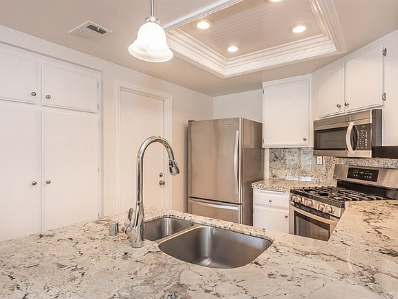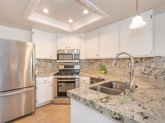 Absolutely ADORABLE 2 br, 2 full ba condo situated perfectly between the beautiful RSM Lake and Saddleback Mountains is located on the ground level with no steps and the upstairs owner lives out of the area and is rarely there.The entry is enchanting and welcoming with colorful plantings! As you step inside you'll find an open-concept space which includes a large kitchen with tons of storage, freshly painted cabinets with new hardware, stainless steel appliances (fridge included!), gorgeous granite counters with breakfast bar and new pendant light,dining area with new brushed nickel chandelier, and living room with a cozy fireplace. Down the hall is a full bath with tub/shower and granite counters, guest bedroom with double door entry, and the Master Bedroom with a walk-in closet PLUS an extra closet, and an en-suite bathroom with ample linen storage and updated vanity with glass bowl sink and granite counters. Other features of the home are living room sliders leading to the intimate outdoor space with newer pavers, laundry area just off the kitchen which leads to the direct access 1 car garage with added overhead storage, and solid surface flooring throughout...NO carpet! A short walk to enjoy RSM Lake and Beach Club, Shopping and Restaurants, Hiking Trails in O'Neil Park, and Award Winning Trabuco Mesa Elementary. Just steps away is the community pool and spa or enjoy one of RSM's many pools, parks, community center, movie theater, and sports courts! Oh, and NO Mello Roos!