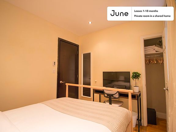This Full room in Upper West Side is available on a 12 month lease or a flexible short term (31 to 364 days) lease. You pick your custom start and end date. Monthly rent rate is determined by furnishing preference, move-in date and move-out date. Speak to a June representative for recommendations on the best stay duration for the lowest rate.