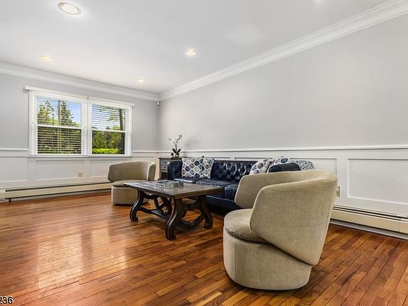 Ease of living in this 4 BR Colonial tucked away on a quiet, but very convenient street close to all major highways, public transportation, shopping, Houses of Worship & parks! Short drive to Manhattan Direct NJ transit too. Modern floor plan with beautiful wainscoting, decorative trims & moldings along with tasteful accents & fixtures. Hardwood floors, foyer entry, front to back living/family room, large kitchen with granite counters & tiled back splash, formal dining, first floor laundry, bath & more. All 4 bedrooms on second floor with primary bedroom containing two closets with custom built ins. Additional finished lower level with recroom, play area, private office & storage. Central air, whole house generator, one car garage with inside entrance and rear deck to park like, level property. Top it off with maintenance free exterior, paver walkway, two car wide driveway and all public utilities. Playset in yard included. Some photos virtually staged.
