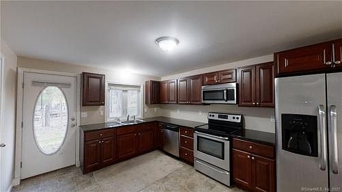 Great Location at Amston Lake very short walk to the right of way for swimming and boating access. This adorable ranch has been totally renovated with gorgeous Cherry Cabinets and all new flooring and bathrooms Laundry in Bathroom stackable washer Nice size yard just enough room to play without breaking your back mowing Hurry wont last long
