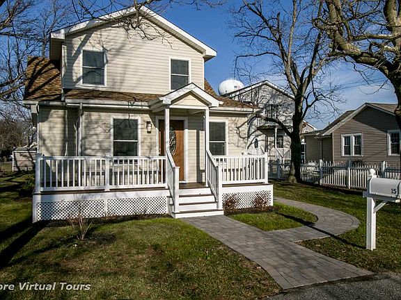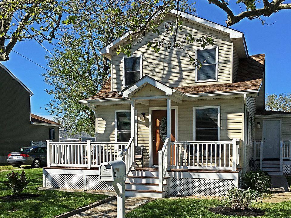Completely renovated in 2012 by MCM construction this home has a great open floor plan, is on the bay block and has gorgeous finishes throughout! Beautiful Sycamore trees provide summer shade for enjoying a cup of coffee on your front porch finished in maintenance free decking and white vinyl rails. The walkway to the street is a lovely pavered lane. Open your front door to your beach getaway with lots of sunny windows, stylish plank tile flooring and coffered ceilings. The kitchen cabinets are a raised panel detail in a spiced maple and finished with a cappuccino glaze. Quartz countertops are attractively accented by a subway tile backsplash. There is a roomy first floor bedroom with a very large closet that goes under the stairs for extra storage. A large full bathroom on this floor offer both a tub and shower is finished with a tasteful tile choice. There is a laundry room with separate entrance on the first floor as well. Moving to the second floor you will find enchanting niches adding detail and charm to the master bedroom that also has vaulted ceilings. The master bath has a tile shower with glass doors and decorator vanity. Neutral coastal tones and finishes compliment the home for the perfect beachy feeling. The backyard is large and ready for your summer BBQ's. A spacious storage shed, and custom blinds are also included in the sale. Walk to the end of the street for the best sunsets in the area or a lazy day at the beach! Easy to show!