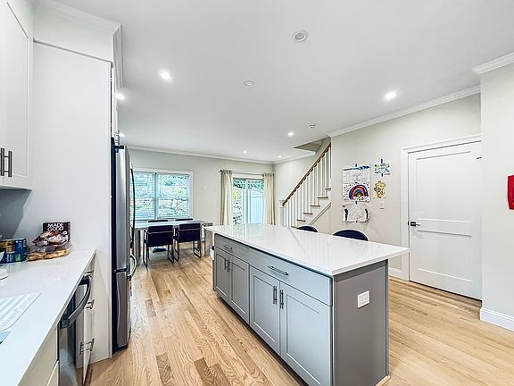 Step inside this beautifully designed home and experience the perfect blend of modern elegance and everyday comfort. The open-concept layout offers a seamless flow, enhanced by sophisticated finishes and abundant natural light throughout. At the heart of the home is a show-stopping kitchen featuring a large center island with quartz countertops, custom white cabinetry, and stainless-steel appliances ideal for both daily living and effortless entertaining. The sun-drenched dining area opens to a sliding glass door to a private patio and yard framed by stone walls and flower beds -your own peaceful retreat. The spacious living room showcases an elevated view of the river and marina, with gleaming hardwood floors throughout that add warmth and style. Upstairs, the primary suite offers gene closet space and a luxurious designer bath. Two additional light-filled bedrooms and a full modern designer bathroom. The lower level includes a laundry room and an oversized two-car tandem garage with plenty of additional storage. Built with attention to detail and quality craftsmanship, this exceptional home offers stylish living in an unbeatable, ultra-convenient location-just minutes from the train, I-95, parks, beaches, shopping, and dining. A rare find that truly checks all the boxes! Call listing agent directly for a fast response and showing. 1-2 years, tenant pays all utilities, landlord takes care of lawn care and snow removal
