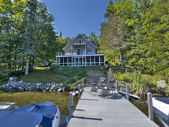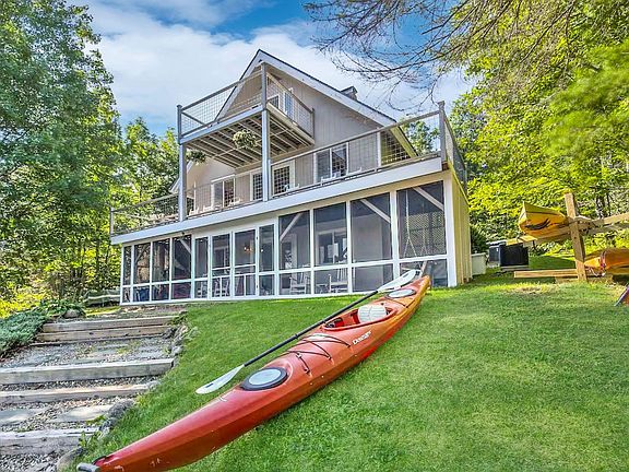 This bright and airy 4 bedroom, 2 full bath four season home features 100' shoreline on Lake Sunapee. Located on Fernwood Point, a coveted neighborhood on a level forested peninsula with quiet cul-de-sac lanes ideal for walking or biking. Enjoy the beauty and fun of Lake Sunapee's waters from the wide porch & balcony, the sweeping lawn on the waters edge or your private deep water Trex dock & mooring. Little ones will love the shallow sandy swim entry. The floor plan features easy living arrangements for family and friends. The main level offers open concept living, dining & kitchen all with water views. Two private bedrooms share an adjacent bath. Upstairs find a lakefront primary suite w/private balcony and second large bedroom also with balcony. The lowest level includes a large recreation/media room & garage with ample storage. Central air, whole house generator. There is ample room on this half acre lot for expansion should one desire. This Jobs Creek location offers quiet, calm no-wake waters, and great opportunities for kids of all ages to paddle, swim and sail. Located just minutes to Vail/Mt. Sunapee Ski Resort.