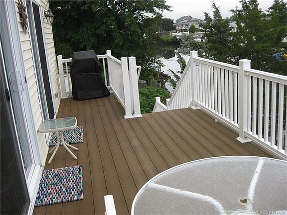 New raised ranch modular built in 2014. Upgrades from manufacturer to show as model home. Anderson Silver Line windows and sliders. Zodiaq kitchen counters, ceramic tile floor and full appliance package. Cultured marble counter tops in baths. Double vanity in master bath. Ceiling fans in each bedroom, dining room and living room. Cable ready in each bedroom and living room. 30 year architectural shingle roof, 10 year home warranty. Maytag high efficiency washer and dryer and on-demand hot water heater. Composite decking and by the water a large deck with ramp and 6' x 20' floater. All this in a bright, sunny location with easy bay access. Large shed area enclosure underneath. Wood bulkhead. Ample parking across stone landscaping and under house. Furniture is negotiable.