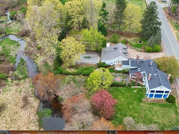 The Hitchcock House, an 1826 colonial, was built by Elias Carter, a well know New England architect. Located in the Brimfield Center Historic District, the 4000+ sq.ft. home is near Brimfield Elementary School and within walking distance of the town and the Brimfield Antiques Show. Restoration and updates were recently completed maintaining the character of the original yet providing comfort for today's lifestyle. Potential for 1st-floor bedroom. Additional unfinished square footage is ready for your ideas. The home sits on a 3-acre parcel with 19th-century stonewalls, professional landscaping, perennial gardens, mature trees, and a flowing brook traveling along the backyard. A former carriage shed formerly used as a 4-stall barn, leading out to the in-ground pool would make great space for indoor-outdoor space for summer entertainment, or a workshop.