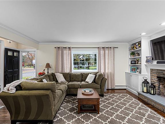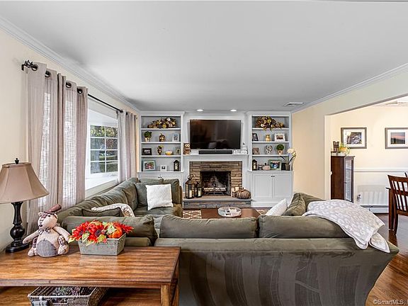 On a quiet road in the sought after Hillandale neighborhood of Trumbull sits this meticulously maintained 3 bed, 2.5 bath Ranch. Conveniently located near Trumbull's shopping, schools, restaurants & commuter highways, this turn key home checks all the boxes. As you open the front door, you're presented w/ beautiful hardwood floors & natural light flowing throughout. The living room offers a wood burning fireplace w/ custom built-in cabinetry, mantle, & shelving. The eat-in kitchen is the centerpiece of the home & boasts tons of cabinetry, granite countertops, stainless steel appliances, & an island w/ seating. Conveniently located off the kitchen is a sizeable deck; ideal for entertaining or relaxing while overlooking the impressive backyard. The formal dining room has custom raised paneling & can host a party of any size! Down the hall you'll find 2 bedrooms w/ plenty of closet space & a fully updated bathroom w/ a quartz countertop lined vanity & a tub/shower w/ subway tiles & built in shelving. The master bedroom offers floor to ceiling ship lap paneling, an updated half bath, walk-in closet, & direct access to the backyard. The updated finished basement consists of nearly 1000 additional square feet. Not only does the basement have a ton of storage space, it is lined w/ luxury vinyl floors & is currently being used as an office, workout space, & an entertainment area. A full bath completes the basement & has a stall shower w/ built in shelving & a custom stone floor.
