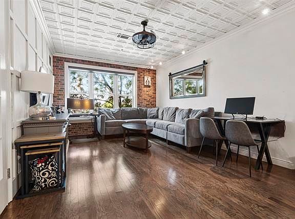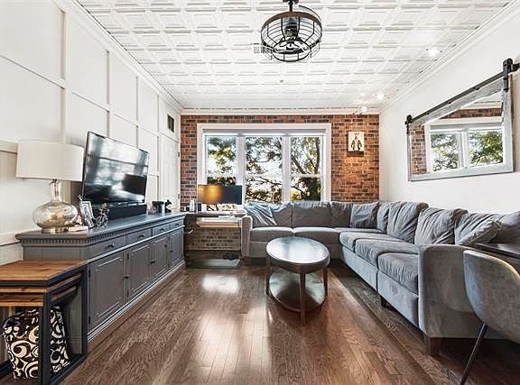 Searching for a chic urban retreat in Paulus Hook where you can enjoy effortless yet comfortable living? Enviably located in Pier House, this 1-bedroom, 1-bath condo is a must-see! Past the lobby staffed by a 24-hour concierge, discover a second-floor unit featuring a 765-sq ft layout finished in crisp white tones accentuated by exposed bricks, easy-care tiles, and dark wide-plank flooring. Multiple windows in the open-concept main gathering areas usher in brilliant natural light and lush marina views, creating a lively atmosphere for unwinding or entertaining. An elegant accent wall, stately crown molding, and decorative tin ceilings lend timeless sophistication to the stunning interior. Avid cooks will love the kitchen’s stainless steel appliances, abundant cabinetry, and gleaming granite countertops that extend to the multi-seater breakfast bar. French doors reveal a well-sized suite where you can relax in peace after a long day. Imagine sipping a nightcap and enjoying the fantastic vistas of Liberty Landing Marina from your private balcony before heading to the wood-clad ensuite to take a soothing soak in the tub. Another notable inclusion is the deeded garage spot to keep your vehicle secured. As perks for living in this building, you get access to top-notch amenities like the fitness center, tree-dotted courtyard, and a pristine outdoor pool. A central location in the heart of downtown Jersey City means you’ll be close to the ferry to NYC and the Exchange Place PATH station. Plus, plenty of shopping, dining, entertainment, and recreation destinations are just outside your door. Come for a tour before this gem slips you by!