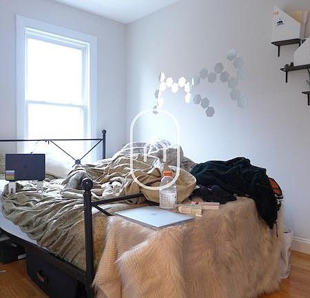 Gorgeous top floor unit Located in beautiful brownstone Four bedrooms One renovated bathroom Eat-in kitchen Stainless steel appliances New refrigerator Updated hardwood floors Electric stove Gleaming wood cabinetry Laundry in building Steps away from Northeastern University Access to Orange line