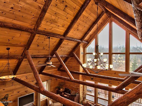 Beaver Mountain Builders Custom Luxury Log Home in Prestigious Lakeview Estates!This exquisite home boasts Quality Finishes, Thoughtful Architecture & Environmental Respect! From the Efficient Geothermal HVAC System to the 35 Yr. Metal Roof, the Commercial Grade Custom Kitchen, the Solid Hickory Doors, the Hand Hewn Wood Work;right down to the to the amazing Light Fixtures and Faucets... This home does not disappoint!All perfectly situated a short walk from the private beach of Lake Watawga and 2 Hours from NY or Phila!