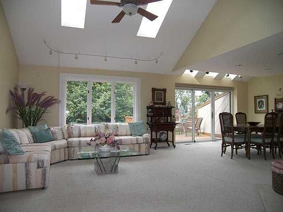 Pristine condition. Bright and open floor plan. 2 story foyer with skylights. Living room w/cathedral ceilings, gas fireplace, 2 skylights. Loft overlooks 1st floor. Spacious eat-in kitchen with dinette area. Formal dining room with 3 skylights and triple pane patio door leading to deck. Elegant master bath w/soaking tub and skylight above. Additional 500 sqft in professionally finished lower level family room with day light windows. Spacious deck overlooks mature tree line for added privacy.