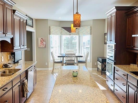 - Kitchen Features: Cabinets Stain, Pantry, Stone Counters, Kitchen Island, Breakfast Room