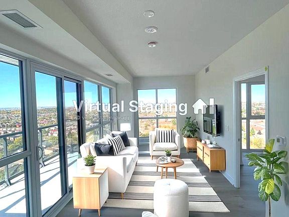 Soaring floor-to-ceiling windowsAiry open-concept designGenerous denModern kitchenStylish cabinetryLuxurious quartz countertopsPremium stainless steel appliances