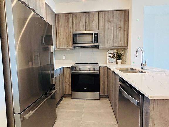 Stunning floor-to-ceiling windowsOpen-concept layoutUpgraded kitchen cabinetryStainless steel appliancesSleek laminate flooringIn-suite laundry
