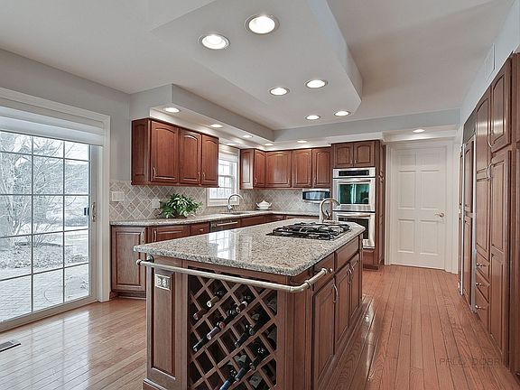 Continue to Show, current contract is a House to Sell Contingency. Lovely home located in The Coves with access to 85 acre lake and views of 26 acre lake. Hardwood floors, white millwork. Updated kitchen with cherry cabinetry, granite countertops, SS appliances. Family room with gas fireplace leads to vaulted 3-season room with new windows overlooking paver patio and yard. 1st Floor office with private exterior door. Master bedroom with gas fireplace, luxury bath, large walk-in closet. Finished lower level with full bath. Close to I-90 and METRA.