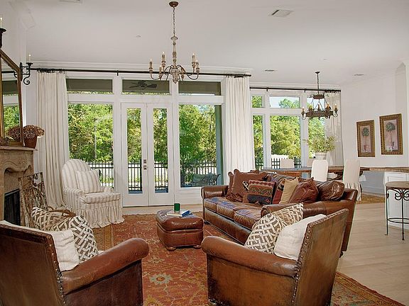 Spectacular waterfront townhome in a gated enclave of East Shore! With walkability to Town Center, shops and restaurants along the Waterway, as well as concerts at the Pavilion, this location can't be beat! This French inspired home features antique barn board ceilings, herringbone brick floors in the entry, European white oak floors, heirloom light fixtures, incredible storage, an elevator for convenience and custom details too numerous to list. The open concept kitchen with antique wood island and floating shelves, heirloom wood pantry door, decorative brick, farm sink and stainless steel appliances overlooks the dining room and den with fireplace and serene water views and doors that lead to the patio; 2 bedrooms and owner's retreat on the 2nd floor with outstanding marble bath, palatial walk-in closet and balcony; 3rd floor has an additional bedroom and game room; 4th floor bedroom with full bath could be exercise/home office/media room!