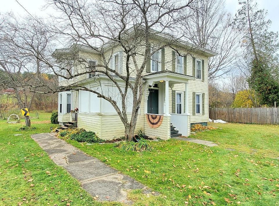 Not often do you get a second chance at owning this Charming Home Sweet Home! From the moment you step in to the grand entry way, with gorgeous stair case, high ceilings and amazing hardwood floors you can see the character and craftsmanship that wont disappoint! Large living room, with formal dinning with access to the side porch. Kitchen has newer appliances, nice island for sitting and laundry area also access to the side deck and fenced in yard. Upstairs has a large primary bedroom with full bathroom, 2 more nice size bedrooms and bonus room, all wit high ceilings. Outside is perfect for gatherings, gardens & kids and fur friends to play with the side yard fully fenced in! Easy commute to Ithaca, Waverly/Sayre, Horseheads. This is a must see!