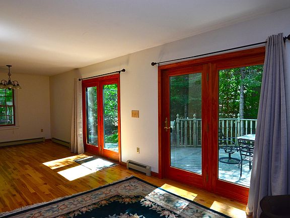This charming cape in the Golf Course section of Eastman, sits nestled on a beautifully landscaped yard with paths, decks and gardens. Hardwood floors, and lots of glass make for an airy open feeling throughout the first floor. Fireplace in the living room makes for a warm cozy atmosphere. Primary Bedroom on the main level with private bath and walk-in closet. Upstairs you will find two large bedrooms and central bath. Spacious walkout basement with laundry room and workshop. Close to golf, the lake and South Cove Activity Center, it is a perfect location for full time or part time living. Live where you play!