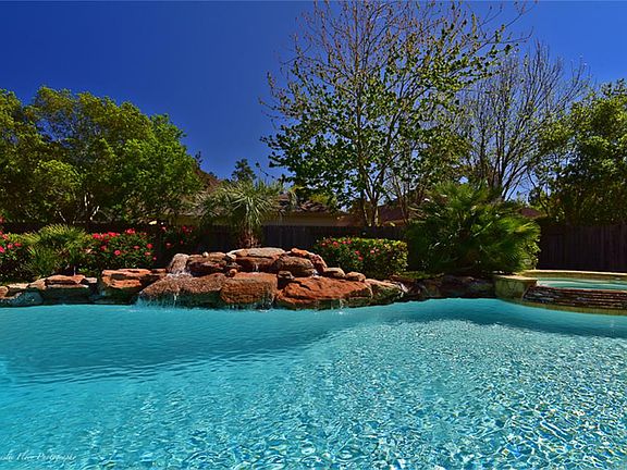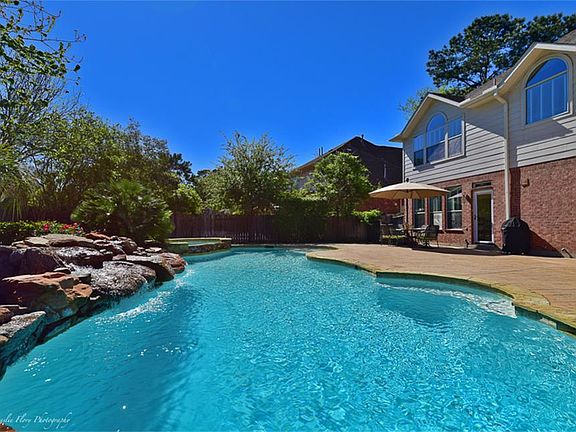 Absolutely gorgeous home in a spectacular location! Hardwood & tile flooring throughout downstairs, plantation shutters, crown moldings & graceful columns are just the beginning! A large kitchen w/oversized breakfast overlooks backyard paradise. 2 living areas including a huge upstairs gameroom. Serene master suite w/tree views & frameless shower. Generously sized secondary bedrooms. Enormous pool w/tropical waterfall & landscaping! Room for play! Walk to 2 parks, friendly neighbors! EZ commute!