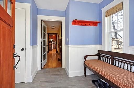 Welcome home to this lovely, renovated 1920s colonial in the desirable West Street neighborhood. Enter the new wainscoted mudroom with handsome tiled floor and fall in love with this bright, lovingly maintained home. The spacious living room opens to a dining room with built-ins and a large bay window offering superb sunset views. Hardwood floors and natural woodwork offer warmth and charm. The renovated kitchen boasts great counter space, a colorful recycled glass backsplash, a kitchen island, and a corner sink overlooking the perennial garden with arbor swing. A new ½ bath with tankless toilet and stylish compact vanity completes the 1st fl. The upper level offers 3 beds, 1 full bath, good closets, and bonus space for a reading nook or study. Walk-up attic is great for storage or expansion. A partially finished lower level with 3 large windows and a ½ bath is a great family room, guest room or office. Spend the summer tucked away on the large deck enjoying the garden!