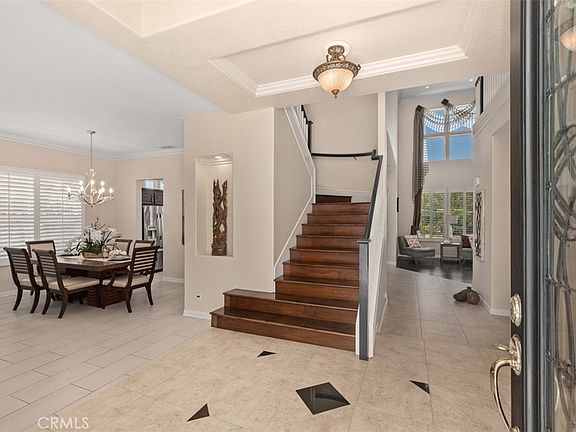 In the prestigious community of Coto de Caza this Four Bedroom plus Loft, POOL home provides a great opportunity. Enter through Double doors to the Formal Foyer which greets you with Vaulted ceilings and an abundance of Natural light. Adjacent to the foyer are the Living Room and Dining room. Move ahead and you’ll enter the Family room where Two levels of windows, Entertainment center and an inviting fireplace surround the room. The adjoining Kitchen is equipped with Stainless steel Appliances, Center Island, Eating area and Pantry. Additionally, find a Main Floor bedroom with Doors leading to a private courtyard. A separate Full bathroom is also on the first level. The Second level features a bonus area/loft perfect for office, or homework station. Two additional secondary bedrooms are at the right wing of the home and share a Full bath. The Primary Suite is situated at the left side of the home and features a nicely sized balcony where you can enjoy your morning coffee, afternoon tea and take in the View. Ensuite Primary bathroom encompasses dual vanities, Soaking tub, Separate shower, & Two walk-in closets. The resort style backyard offers Privacy, Hillside, & Sunset views all while enjoying your Salt Water Pebble-tec Pool & Spa. Get ready to grill at your Built-in BBQ or Relax and dine under the covered Patio. Notable interior details include Crown moldings, Large baseboards, Plantation Shutters, Freshly painted and Second floor Laundry. Exterior notables are Three-car garage, Newer dual AC and owned Solar. Nearby you'll find the Coto de Caza Golf and Racquetball Club, a private club, with Fitness, Tennis, Swimming pool and Two 18-hole golf courses. Coto de Caza is known for its walking, hiking and biking trails with beautiful green belts and parks. Shopping, entertainment, and award-winning schools are also nearby.
