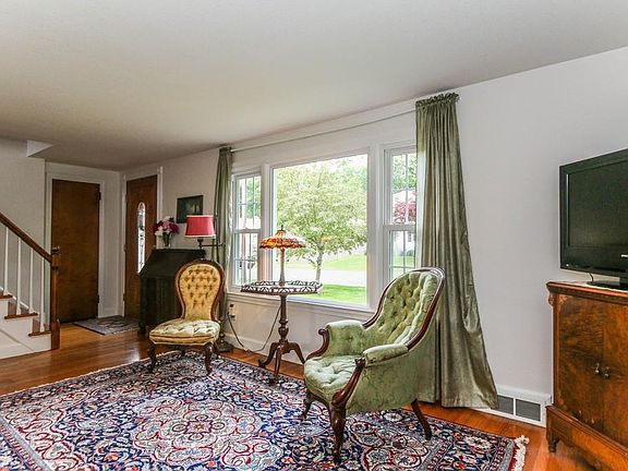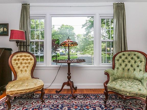Gardener's paradise with a sprawling lighted backyard retreat starting at the deck and leading to various gardens and a koi pond water feature to enjoy. If you love a beautiful garden, look no more - indulge your hobby here. Well loved & maintained 1,824 square foot, 8 room, 4 BR, 2 full bath Cape is set on Westernview Circle near the town center and rotary. Main level boasts a sunny family room with cathedral ceiling, skylights & Atrium sliders to the decks. Formal LR has a wood burning fireplace & picture window, DR has a built in corner china cabinet. First floor also offers an updated tub/shower bath, 2 comfortable bedrooms & hardwood floors. Upstairs are 2 more generous bedrooms and a remodeled shower stall bath. Basement has a simple recreation room with 2- zone motion activated lighting, laundry and storage area. Central AC keeps you cool inside. Vinyl sided for easy maintenance, vinyl replacement windows for energy efficiency. Central AC. Call today and make it yours.