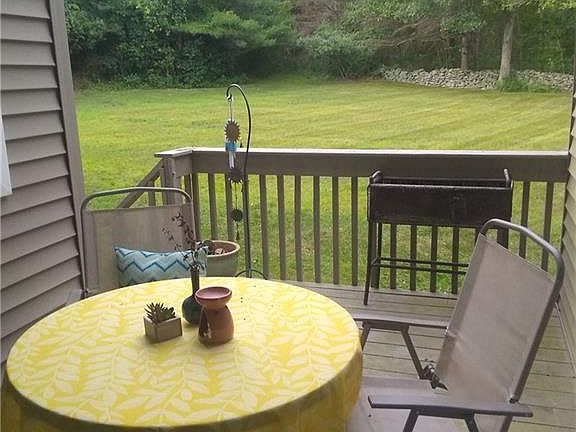 Beautiful townhouse in the country with convenient access to 395 and 290. Relax in a country setting with area stores and restaurants just minutes away. 2 bedrooms and a bonus room that could be used as an office or playroom. Master bedroom has walk-in closet, private balcony, and same floor laundry. Vinyl flooring through most of unit. Slider in dining area opens to a private deck. Property backs up to CT airline trail state park and access to park is just steps from the front door of this unit. Three designated parking spaces including one garage space. Never have to shovel again!