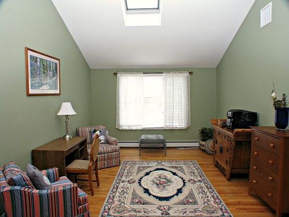 Video at www.15westvale.com - Fabulous 2nd floor great room with soaring cathedral ceiling & skylights. A French door leads to the treetop deck. The dining room opens to the living room with fireplace views from both rooms. The spacious eat in kitchen has stainless steel appliances & a view of lovely yard. The beautiful 3 season sunroom has a cathedral ceiling and is perfect for relaxing at the end of the day. 2 BRs & a modern bath on each floor. 1st floor bath is ADA compatible. Home is handicapped accessible with a chair lift in garage. Heating system was replaced in 2000 and central air was installed in 2007. There's so much to fall in love with in this home!