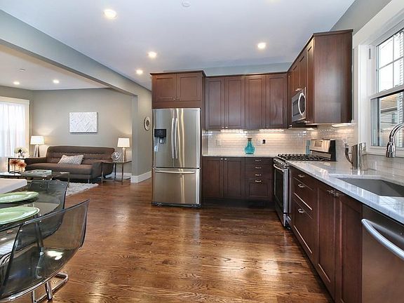 Incredible full-gut renovation half a mile from Assembly Square! This two bedroom can comfortably be used as a three bedroom.Designed as an open kitchen/living concept, the living space is generously sized with windows on three exposures, bringing in an ample amount of natural light. The top-of-the-line kitchen features a Samsung appliance package, rich,modern cabinetry, Carrara marble countertops, chrome finishes and the perfect nook for an eat-in kitchen table. Gorgeous dark walnut stained oak hardwood flooring and recessed lighting throughout. Contemporary bathrooms are finished with Kohler. On the first floor, there are two large bedrooms, an office space that accesses the private yard and parking space. Entering the lower level, a large enclosed room that can be used as a third bedroom with it's own private full bathroom across the hallway, along with a huge open room that can be used for a family room, exercise room or large office. Unit Laundry hook-up and deeded parking.