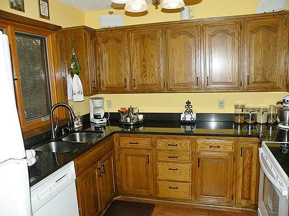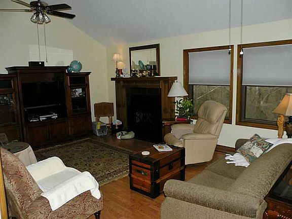 Turn key end unit with Table Rock Lake view! Tastefully remodeled townhome is pretty from the word go! The front exterior is landscaped, fenced and trimmed with rod iron and is private since it is an end unit next to greenbelt. Tilt out windows throughout,Living room has propane fireplace, wood surround and is vaulted to meet upper level loft sitting area. This townhouse has two master bedroom and baths- one on each level. Updated baths w/solid surface, laminate flooring with 1 marble walk in shower.Bright