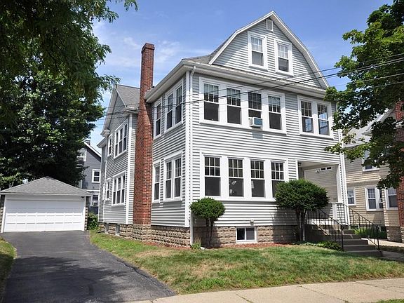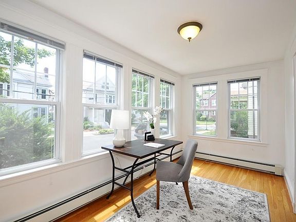 This bright and sunny 2BR/1BA apartment is tucked away on a quiet street with a welcoming neighborhood feel. Large gracious rooms, hardwood floors, high ceilings, lovely built-ins, and a great yard with garage and off-street parking. The kitchen is pristine and gleaming with white cabinets and has the most charming breakfast nook/butler's pantry area. The dining room has wonderful wood details and a built-in cabinet. Sunlight streams into the living room that opens to a bonus office or playroom space. Ample additional storage in the basement. Stroll the Minuteman Bikeway and swing by Thorndike Field on your way to Alewife Station, or head up to the East Arlington shops and restaurants for a night on the town. Video tour of the apartment available upon request. No broker fee. One month's rent security deposit, plus first and last month rent in advance. Currently offering six-month's lease with the option to extend additional year(s). Landlord pays for water and snow-removal. Renter responsible for gas, electric and cable/internet. No pets, no smoking.