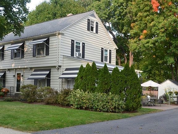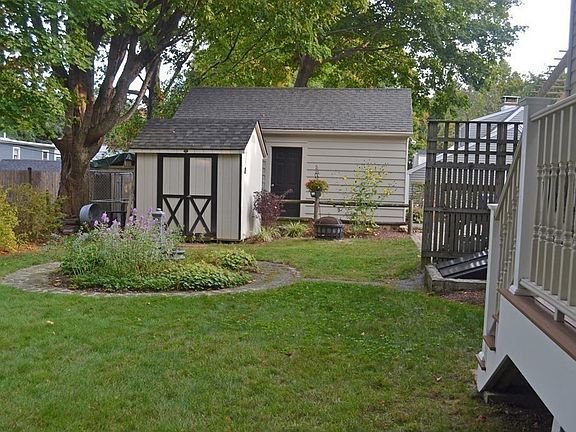 Beautiful Colonial home within walking distance to downtown Whitinsville. Built in 1940, this house retains original features with contemporary upgrades. A new kitchen features up-scale cabinets, granite counters, a baker's island, stainless steel appliances, period lighting. A welcoming, sunny entry room currently used as a "work-at-home" space and leads to open dining and kitchen areas. Dining room and living room are highlighted with crown moldings and original hand-painted landscape murals, giving the home distinguished individuality. The family room, originally a bedroom, opens to a 8' x 8' deck. First floor bathroom features a walk-in Jacuzzi tub. Second floor includes three bedrooms, bath, and study space. Hardwood throughout the house. The home offers 1935 sf of living space plus finished basement room. The attractive, well-maintained yard includes a water feature, 465 sf. patio, mature plantings, shed, and garage. Pergola on 9' x 13' deck off sunroom.