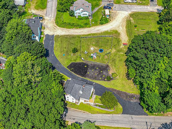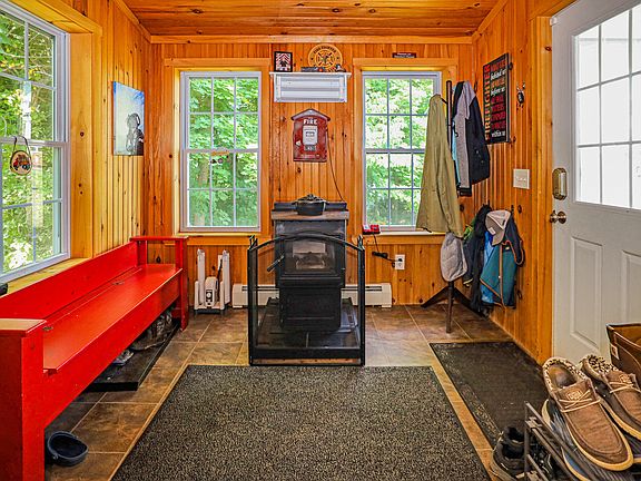 The finished basement provides even more living space, featuring a comfortable family room with laundry hookups, a relaxing hot tub area, and a utility room. Outside, the large paved driveway offers plenty of parking space, and the shed provides additional storage. The outdoor wood boiler with storage containers ensures efficient heating, while the fenced-in area is perfect for pets or a play area.